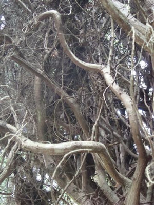 with strange faces visible in their bark ...