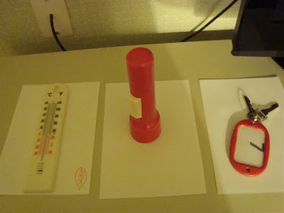 First of all (and most impressively), there's the undoubted movement of a trigger object during our first night in Room 7. As you can see below, the stone adze has clearly moved - not much, but a little - between the first shot and the second. We'd drawn a pencil line around it, and there was a perceptible shift in its position.